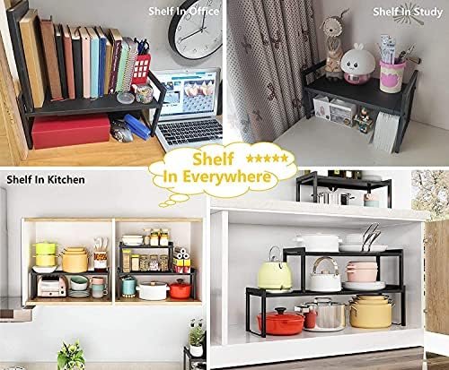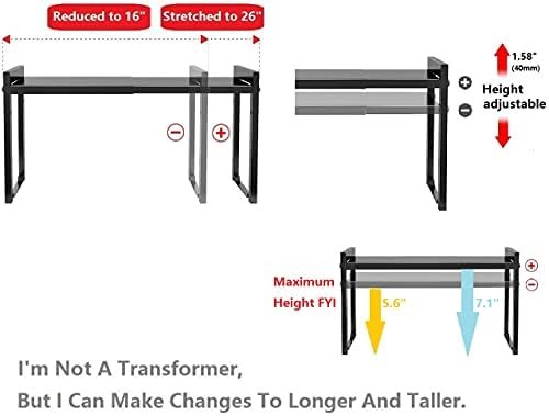 Urhomey plus Expandable Cabinet Shelf Organizer 16~26″ Stackable Kitchen Counter Shelf Rack 22LBS Sink Shelf Riser Countertop Storage Black