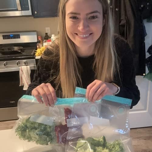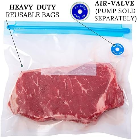 STORE IN BULK: Now features reinforced double zipper vacuum food bags which extends food life by 5x and virtually eliminates freezer burn. Which means less wasted food and money