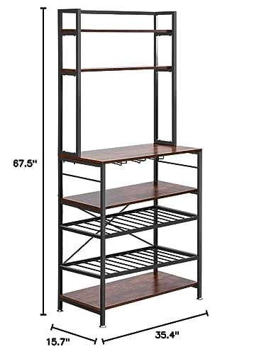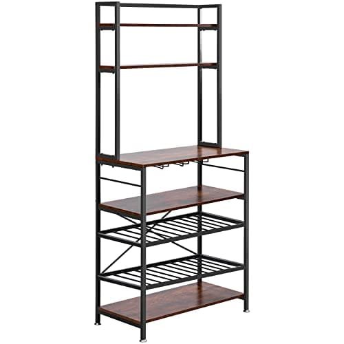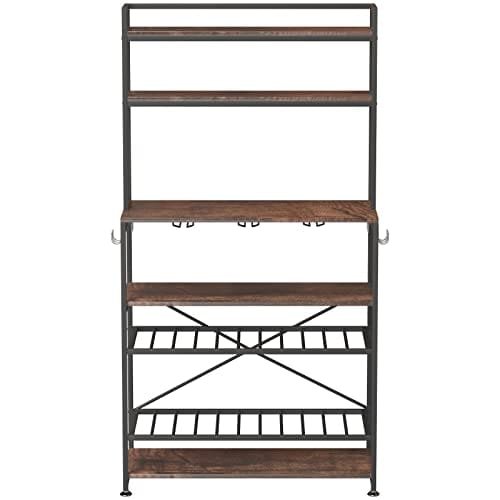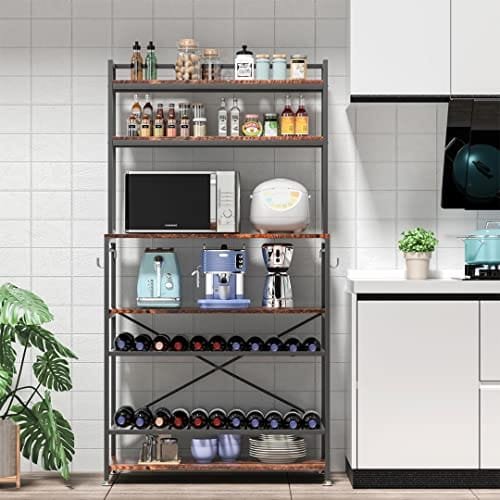 Adjust for All Your Needs: The 2 wine racks can be adjusted. You can choose the appropriate hole position according to the height of the items you want to place (3 holes for installation). It goes beyond just storing ingredients and utensils. This bakers rack with storage is more than enough space to store your favorite wine too.