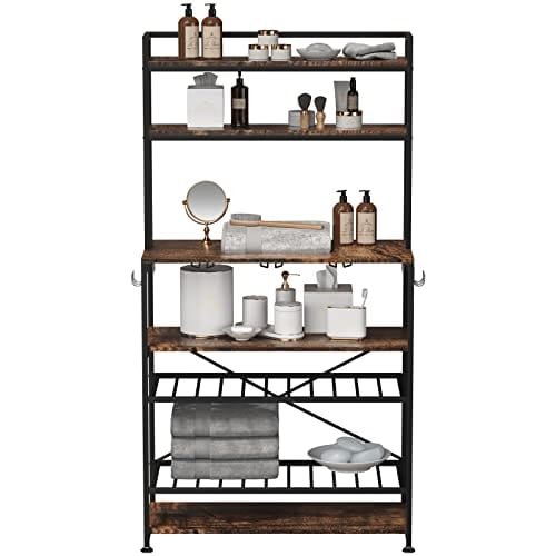 Durable Strctures: The kitchen baker rack with storage is made of 15 mm thick chipboard and 20 x 20 x 0.7 mm iron pipe, which can ensure long-term stability and durability. Its high-quality material enables it to bear more of your daily necessities without shaking or tilting during use. Total bearing capacity: About 320 lbs. A ton of support in the kitchen is a must.
