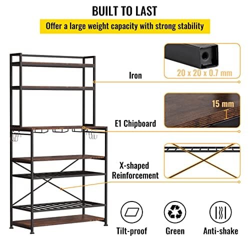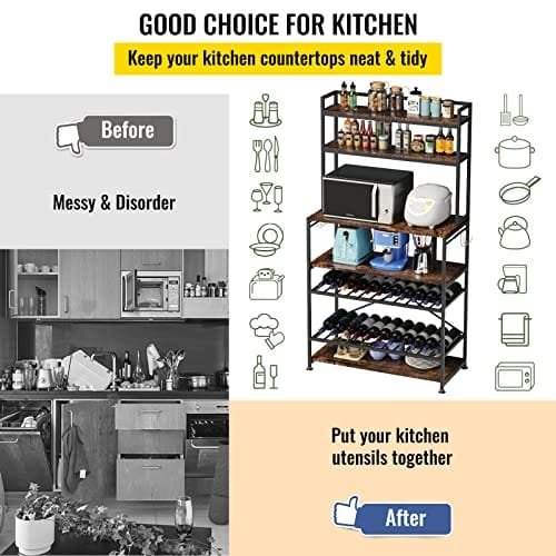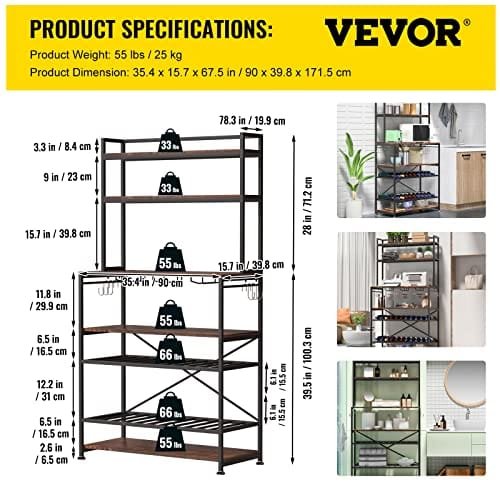 Easy to Put Together: This industrial baker’s racks are extremely easy to assemble with necessary hardware, step by step instruction manual and simple stool. Feel free to contact if you have any problem, we will response in 24 hours.VEVOR Bakers Rack can elevate your home appearance and enjoy more space.