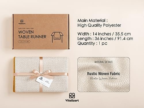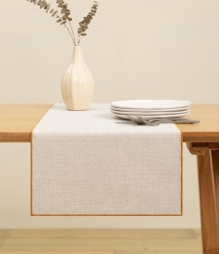Vitalizart Cream Table Runner Woven Rustic Boho Table Runners 14 x 36 Inch for Dining Room Farmhouse Kitchen Decor Home Outdoor Wedding Party Decorations Beige with Gold Edge