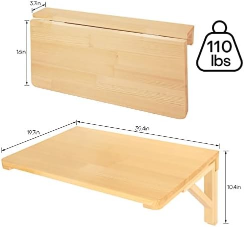 【Easy to Assemble and Clean】: Easily assemble the wall workstation in half an hour. The package includes everything you will need to assemble the folding wall table. An installation video is on the page to guide you through the assembly process. Additionally, the wood desk surface is smooth and waterproof paint can easily be cleaned with a damp cloth.