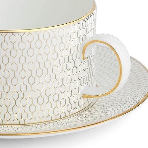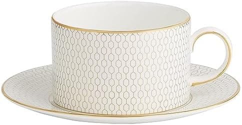 The Gio Gold collection is the perfect blank canvas for you to showcase your food. Elegant simplicity allows your culinary delights to take centre stage, with each place setting becoming a work of art – and every table a mini-masterpiece! Layer your setting with Wedgwood’s Gio or Gio Platinum collections to create even more sophisticated and unique mix and match looks. Whatever your mealtime vision, Gio Gold will help you realise it in style. Indulge yourself with a relaxing blend of your favourite tea from this luxurious Gio Gold teacup. A silky white china cup and saucer is a timeless style statement and the intricate geometric pattern in gold makes this piece a contemporary classic. Sumptuous gilding around the rims and on the smooth curved handle amps up the elegance.