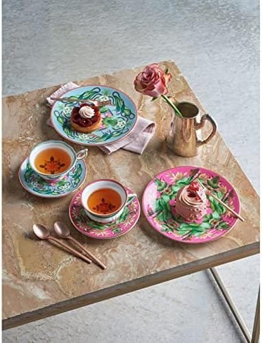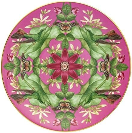 Inspired by flowers with the same name, explore this Wedgwood Wonderlust Pink Lotus 20cm Plate. Crafted from fine bone china, it features a pink and green design of flora and fauna. Brilliantly coloured with gold banding to the edge, use it for breakfast, afternoon tea or your favourite fruit whenever you need to take a break from daily life. Presented in a signature Wedgwood blue gift box.