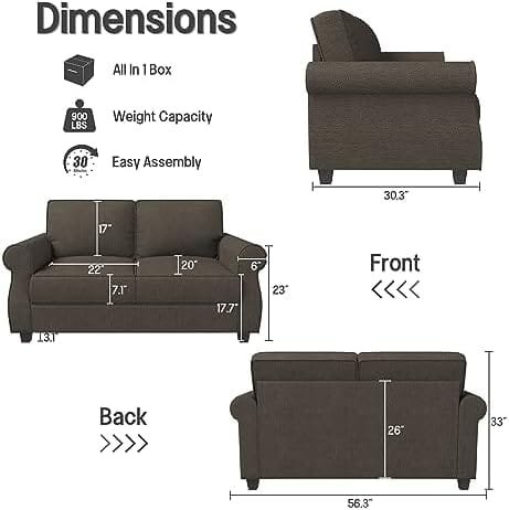 【WIDELY SCENES】—The small sofa couch dimension: 56.3″ L x 30.3″ W x 33″ H easily accommodates 2 people in a comfortable corner, providing the perfect solution for your small space and will be a welcome and lovely addition to your home, suitable for temporary furniture replacement, small flat configurations, living rooms, offices, dorm rooms and bedroom furniture.