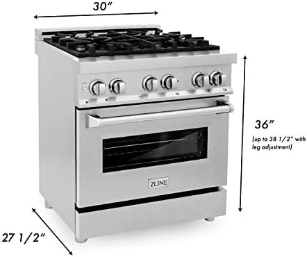 Experience ZLINE Attainable Luxury with industry-leading kitchen and bath products that provide an elevated luxury experience, all designed in Lake Tahoe, USA. The ZLINE 30″ Dual Fuel Professional Range combines a high-performance gas stovetop with an electric convection oven. Providing professional aesthetics and functionality, this stove offers the ultimate luxury experience for a fraction of the cost. Achieve optimal results with cooktop power ranging from 4,200 up to 18,000 BTUs provided with sealed burners. Rely on precise and even heating for every homemade dish with an electric convection oven. Enjoy an ultra-deep oven capacity with a three-layered insulated glass oven for efficient cooking every use. With upgraded premium features such as SmoothSlide ball-bearing oven racks, dual lighting, and adjustable legs, this dual fuel range is certain to wow both the chef and guests alike. Assembled with the highest quality materials on the market, this dual fuel oven offers a durable, scratch-resistant porcelain cooktop and ZLINE’s exclusive single-piece cast iron grate. Cook with ease with StayPut Italian hinges, providing a safe baking environment to enjoy for years to come. ZLINE stands by the longevity and durability of its professional dual-fuel stoves while ensuring further protection and peace of mind with a worry-free warranty. The ZLINE Dual Fuel Range is packaged in multiple boxes and will ship out together the next business day when in stock.